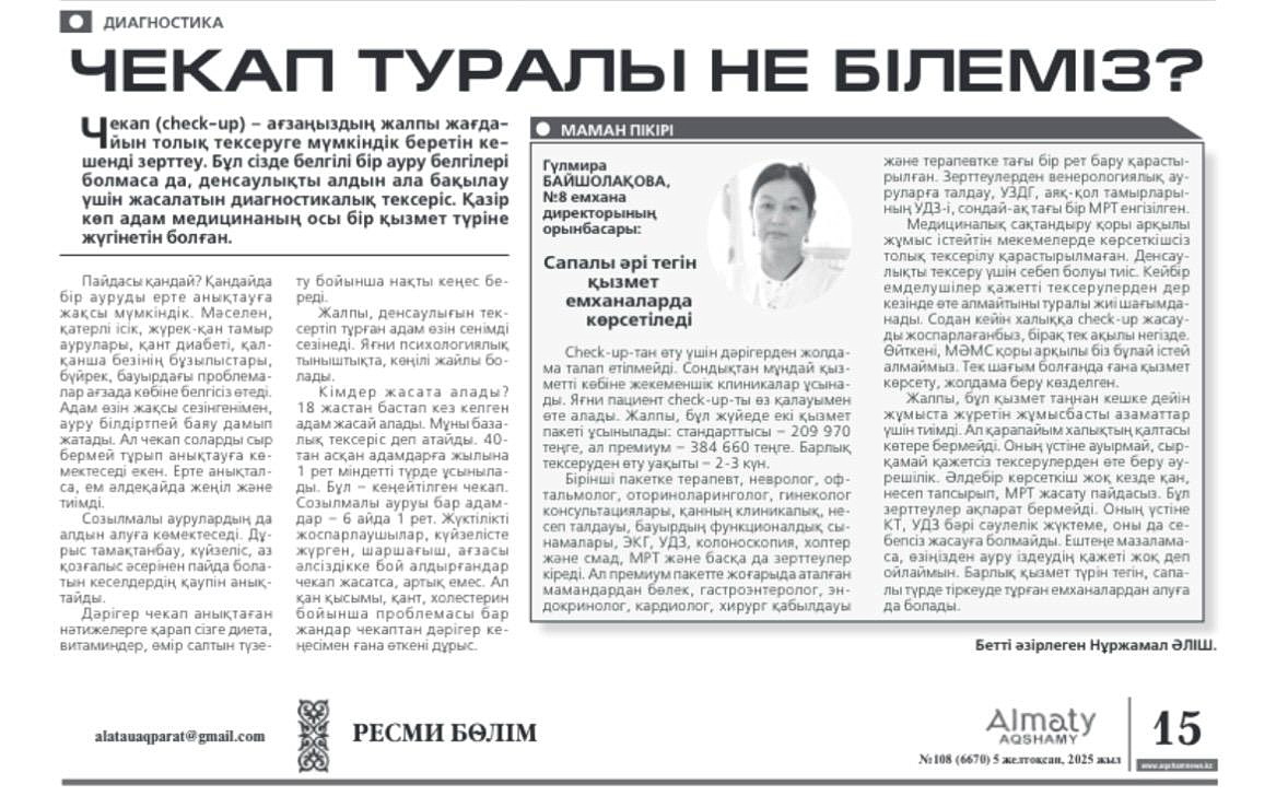 Статья Гульмиры Тимуровны, опубликованная в газете «Алматы ақшамы»